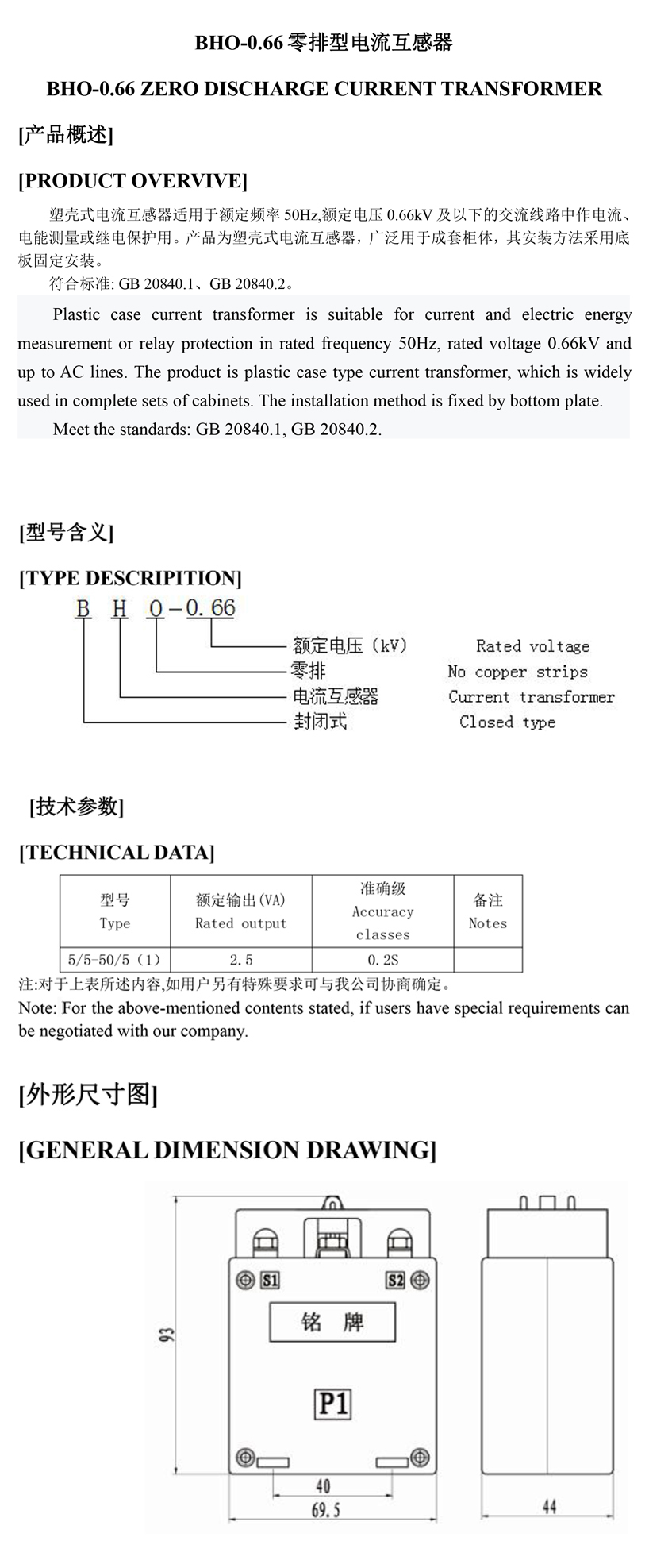BHO-0.66 零排型電流互感器