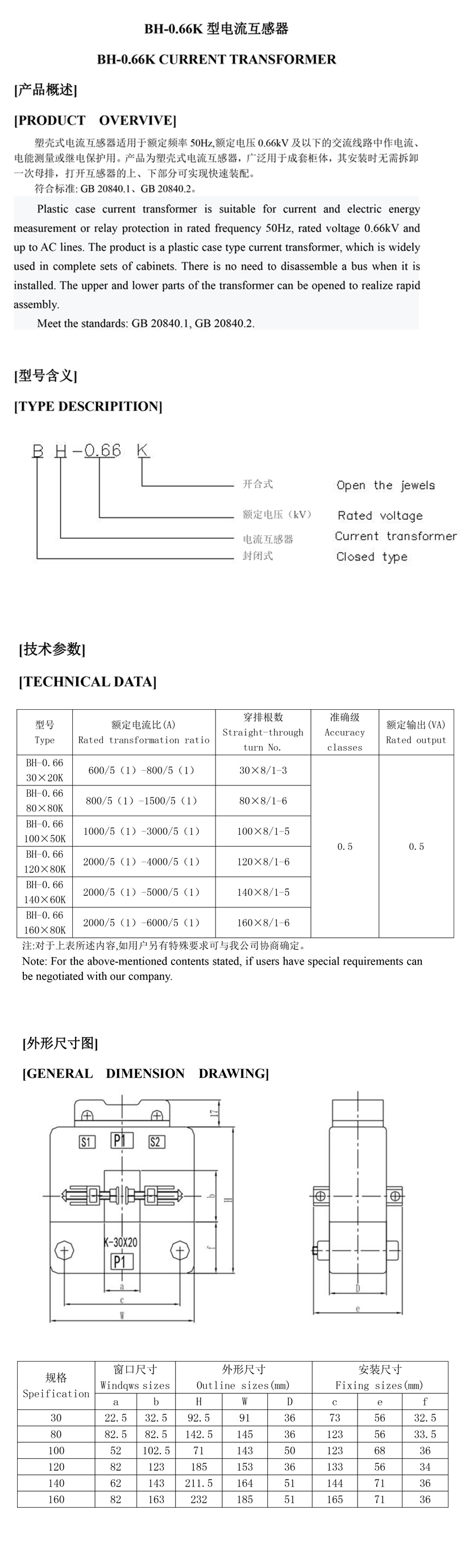 BH-0.66K型 電流互感器