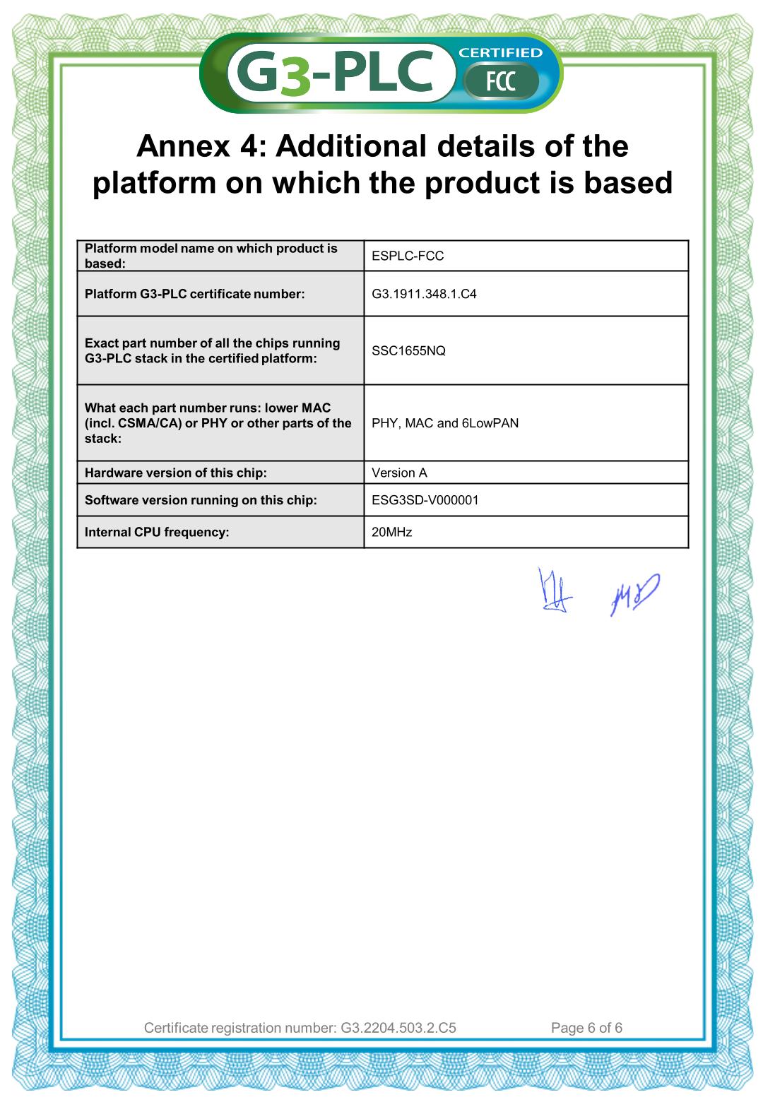 G3-PLC Certificate FCC DTSY1311